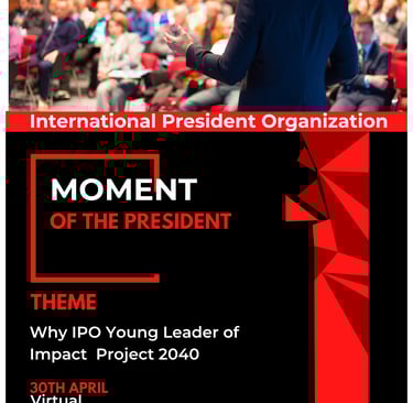 L’International President Organization est la fédération mondiale d’une jeunesse qui se lève pour bâtir un monde plus juste, plus pacifique et résolument progressiste. Elle rassemble des jeunes engagés, porteurs d’une vision audacieuse et d’un sens profond de la responsabilité, déterminés à transformer les systèmes, à défendre la dignité humaine et à ouvrir de nouveaux horizons pour les générations futures.